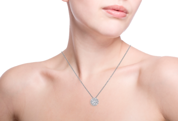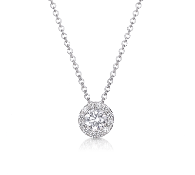 1/2ct round center diamond (H/I1 quality or better), surrounded by 0.35ct round diamonds (G/SI1 quality)